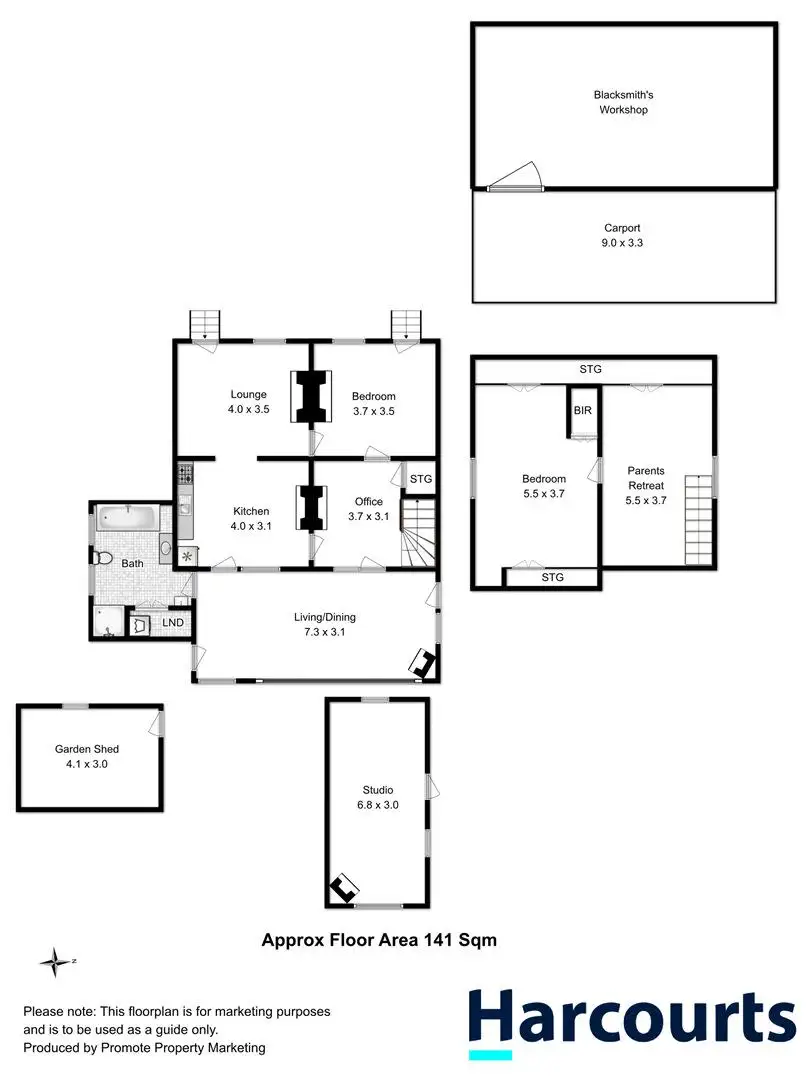 Outside is where you'll find the old blacksmith's shop that now serves as a workshop with an attached carport providing undercover parking for two small vehicles. Other outbuildings include a powered studio, complete with a fireplace, & water connected, and also a handy garden shed close by. There's plenty of scope for green thumbs to extend the established garden which already yields fruit trees & a variety of other plantings.