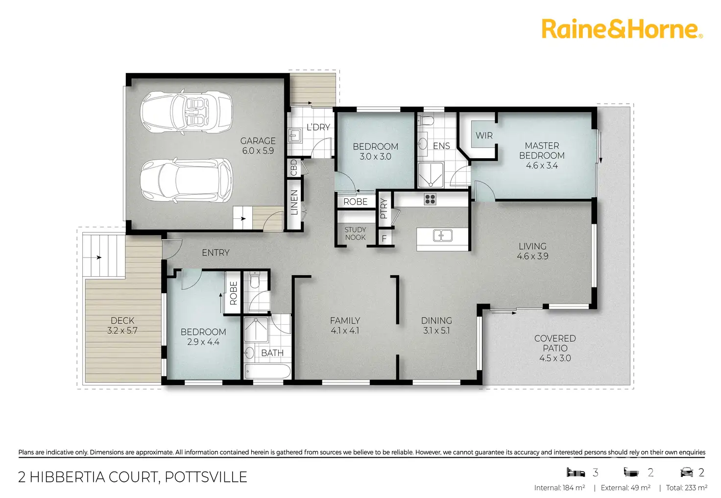 3 Bed • 2 Bath • 2 Car • 710m²