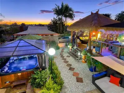 Tenure: Freehold Property condition: Renovated Property Type: House House style: Highset, Queenslander Garaging / carparking: Open carport Flooring: Tiles, Polished and Timber Kitchen: Modern and Breakfast bar Main bedroom: Double and Built-in-robe Bedroom 2: Double and Built-in / wardrobe Bedroom 3: Single Extra bedrooms: 1 Additional rooms: Family Granny flat: Separate Main bathroom: Bath, Additional bathrooms Laundry: Separate Outdoor living: Entertainment area (Covered), Spa, Deck / patio Fencing: Fully fenced Garden: Garden shed (Number of sheds: 1) Locality: Close to schools, Close to shops, Close to transportLand details