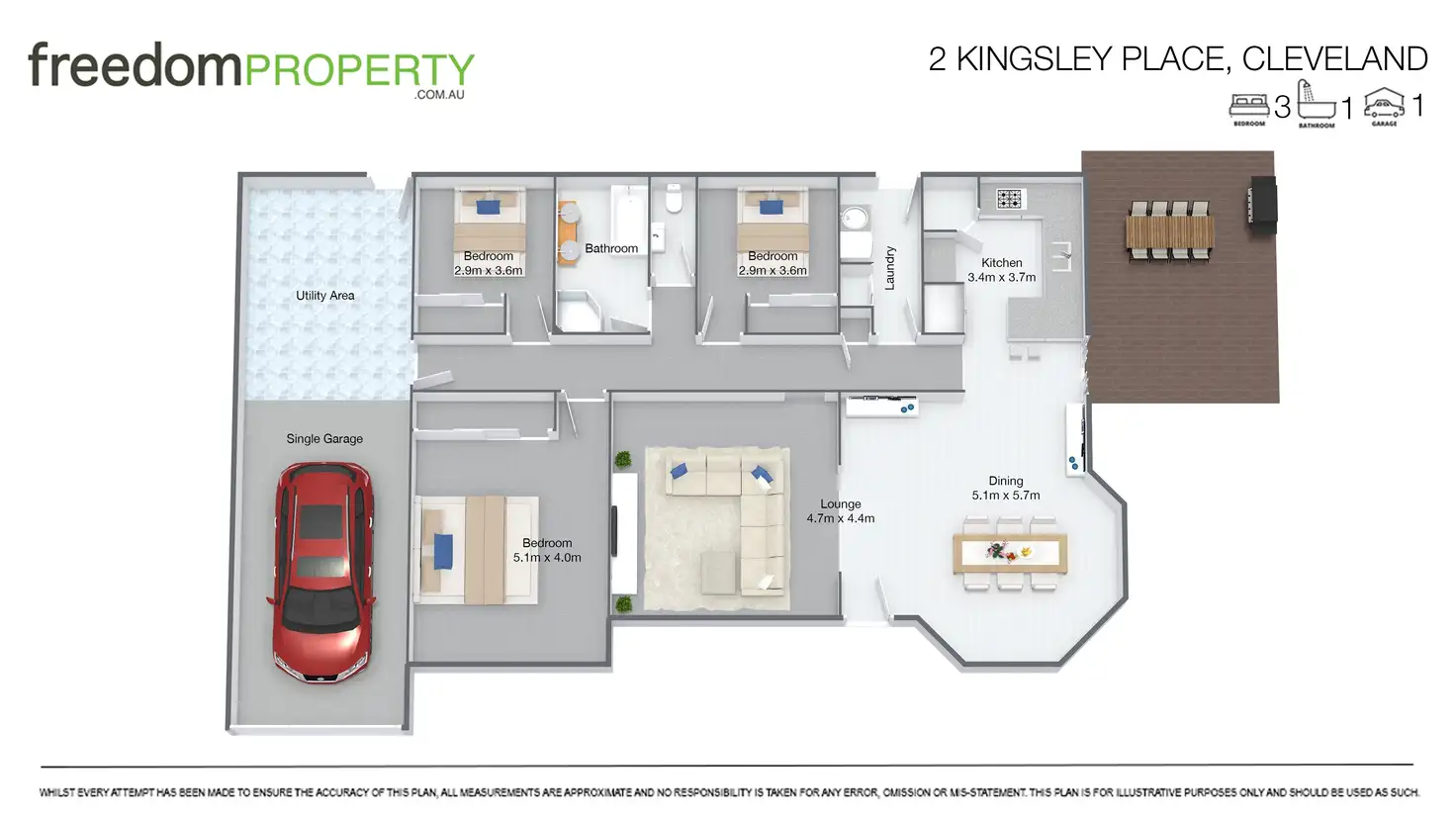 3 Bed • 1 Bath • 2 Car • 732m²