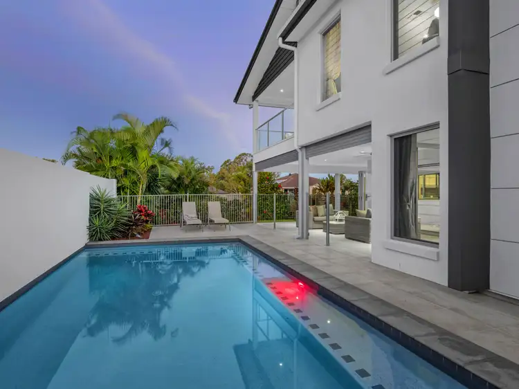 In a word, this home is stunning. The entrance to the home is through a towering portico, fixed glass panels and clerestory foyer set above superb tiled floors. To the right, a timber and glass framed staircase leads you to the upper level. To the left, a choice of indoor and outdoor living areas. A formal lounge with a electric fireplace, that flows effortlessly to the outdoor alfresco space. A media room is set behind the lounge, that can be closed off from the rest of the home. The casual dining room, which also flows to the alfresco space, through multi fold sliding glass doors, is adjacent to the superb chef's kitchen. This creative and inspiring space is bathed with natural light through a fixed glass panel, set between the cooking space and the overhead cabinetry above the cooktop. With caesarstone benchtops, 2 pak and glass faced cabinetry in abundance and first class appliances throughout, the culinary delights will be effortless. A 900 wide gas cooktop, stainless steel rangehood, double fridge space, cafe style lighting, island breakfast bar are just the start. Adjacent is a butlers pantry with stainless steel dishwasher, sink, cabinetry and storage, and more bench space. Here there is a window which could act as a servery, or perhaps the pull up bar in the alfresco space, with bi fold windows to the inside and a ceasarstone top for those casual G&T moments.