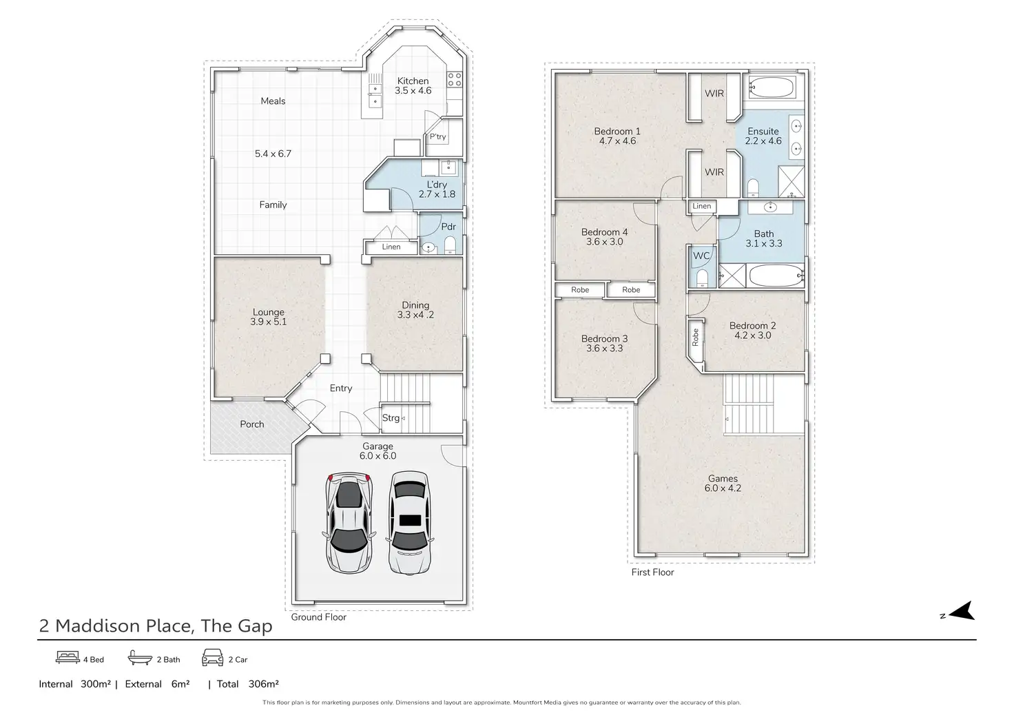 • A large upstairs games/rumpus room, giving teenagers or children their own space to relax and unwind.