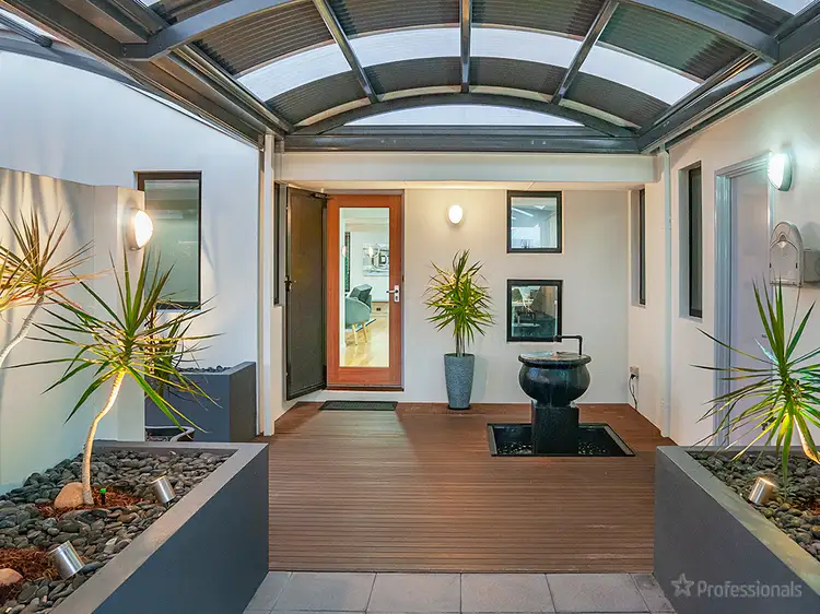 * The entrance to the home has been created to be a magnificent, gated & private front alfresco area with full paving, raised garden beds & stunning water features all under 2 huge, custom dome pergolas.