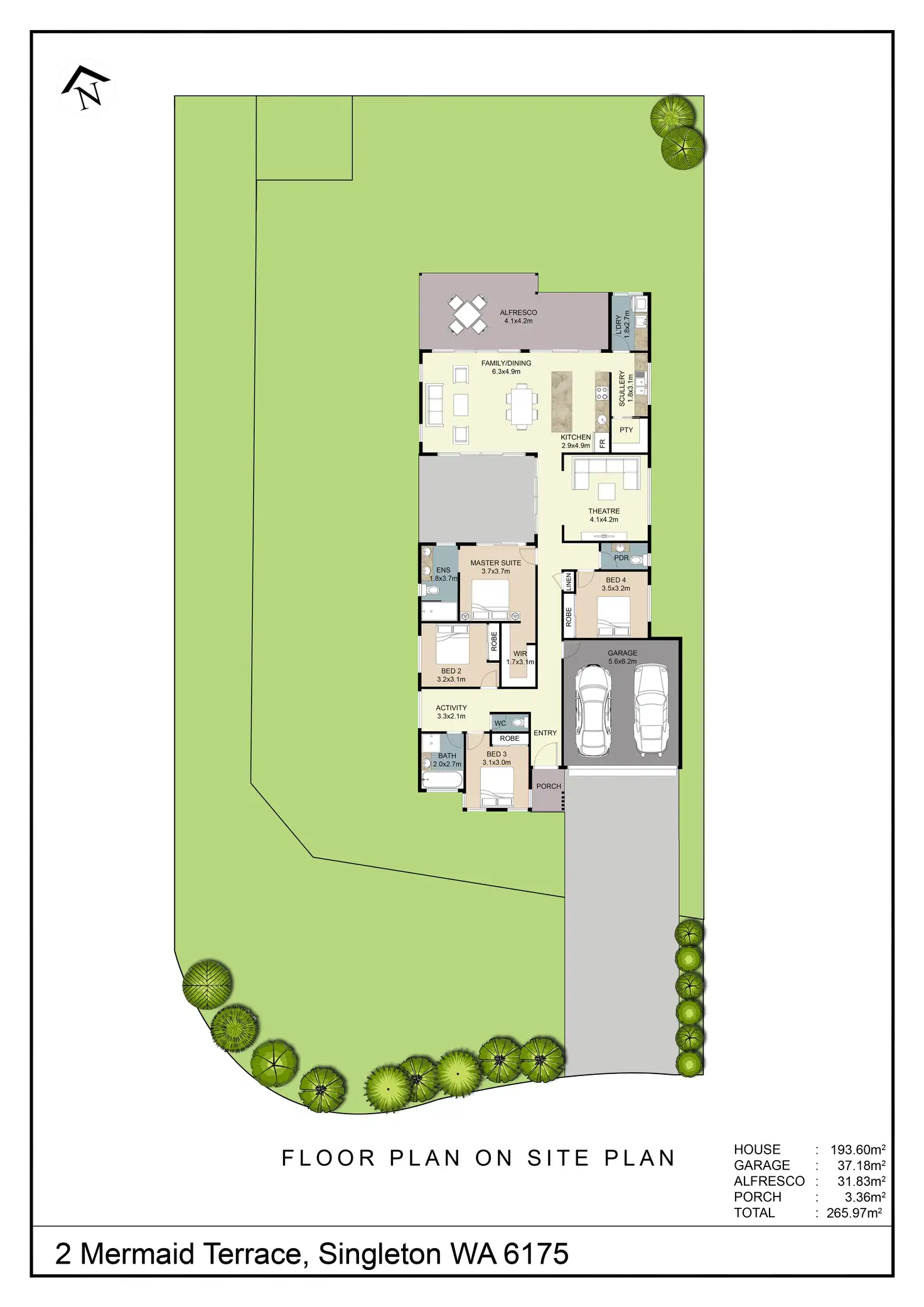 Newly built in 2023 and located approximately 250m from the pristine coastline, this carefully designed coastal family home offers extensive added extras across a beautiful and spacious 194sqm interior floorplan, with the elevated standard of design immediately visible from your very first glance. The 782sqm block offers a calming ocean soundtrack, with little touches included like direct side access to an outdoor shower for easy beach clean-up, and plenty of room to store additional vehicles beyond another set of side gates. The street appeal is instantly engaging to draw you inside, where modern features and a seamless layout provide an enviable combination of comfort and functionality that flows throughout the indoor and out, with a large open plan living and dining area, separate theatre room and activity space between the minor bedrooms. All four bedrooms are well-spaced, with both bathrooms equipped with quality fixtures and fittings, while moving outside, your sheltered alfresco ensures a relaxed outdoor lifestyle, with plenty of lawn, a dedicated area for the firepit and potential to add a pool if required, and subject to relevant approvals of course.