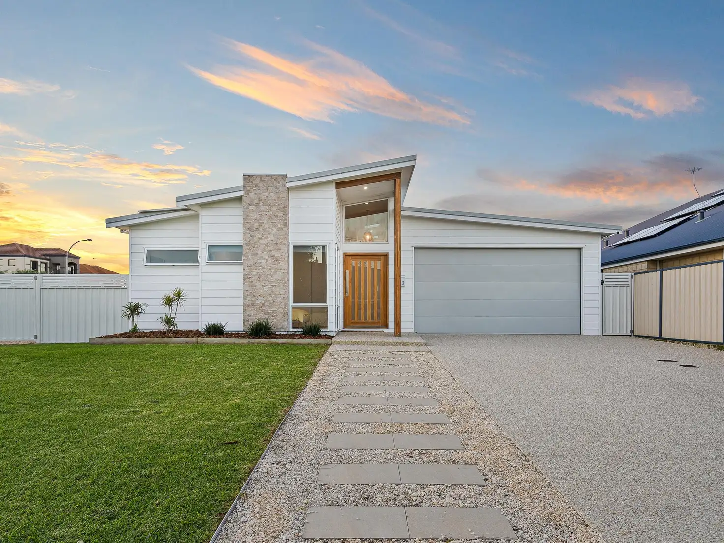 - Striking street appeal, with a coastal colour scheme and modern skillion roofline including a unique timber feature to the entry