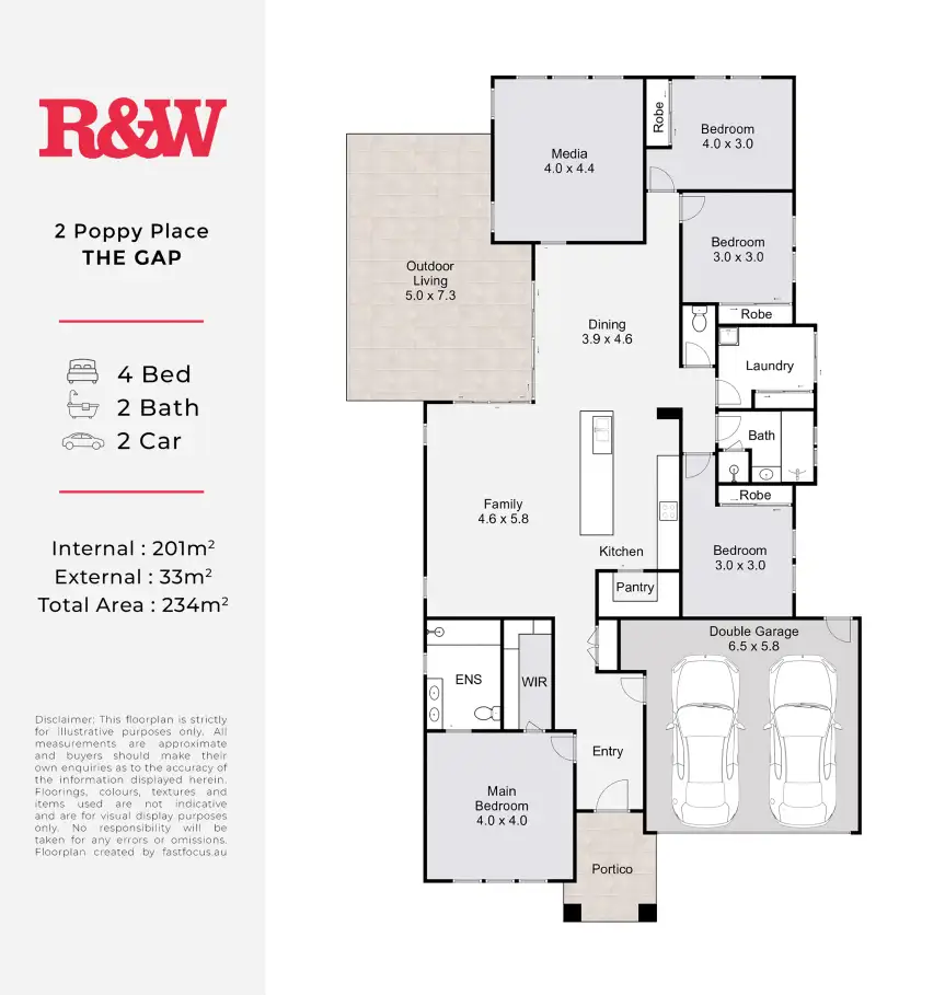 At the heart of the home lies a sleek, stone-topped kitchen with an island bench, quality appliances and generous storage. The open-plan living and dining area connects seamlessly to the covered patio and level backyard, creating the perfect environment for weekend barbecues, family gatherings or relaxed afternoons outdoors. The master suite offers privacy with its own ensuite and built-in wardrobe, while three additional bedrooms and a versatile multipurpose room ensure there's space for every member of the family.