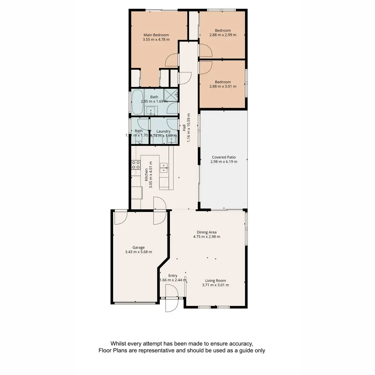• 3 decent sized bedrooms