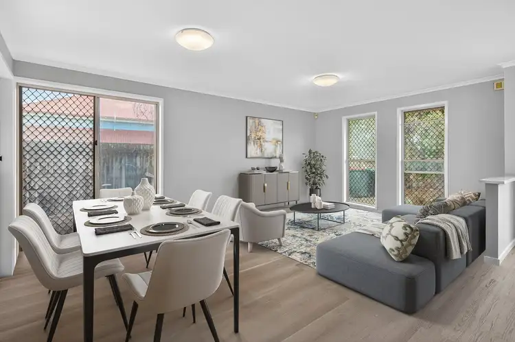 The floorplan includes 3 bedrooms, a chic modern bathroom, an open plan living/dining area, an original, but tidy laminate kitchen, a north facing alfresco entertaining area and a low maintenance backyard. There is also a single lock-up garage with internal access.