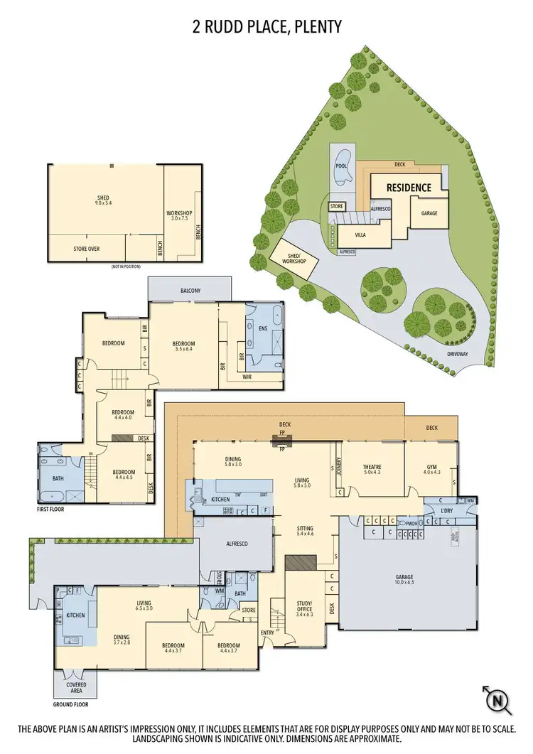 The primary residence features a stunning kitchen and dining area where sliding doors open on two sides to extend the space out across extensive decking and into the landscaped garden. The gleaming white kitchen with its expansive island bench, Bosch and Miele appliances, wine fridge and Zip water unit is an entertainer's dream with a servery window to the bbq area providing a clear view of the solar heated pool and spa as well! Apart from the living spaces the residence also features a home theatre and gymnasium, both of which open to the deck and a study/home office conveniently located just inside the front entrance. Taking the stairs to the upper level reveals the master bedroom/retreat with private balcony, generous walk-in robe and beautifully appointed ensuite bathroom with freestanding deep-soak bath. Three further robed bedrooms and dual vanity family bathroom complete the upper level. The residence features new carpets and repolished flooring, home IT system with Cat 6 wiring throughout, heating and cooling, LED lighting, ample storage, private alfresco retreat, plumbed-in bbq, outdoor fireplace, 3 phase power, garage for 4 cars and separate undercover shed for 4 additional cars, boats caravan etc...