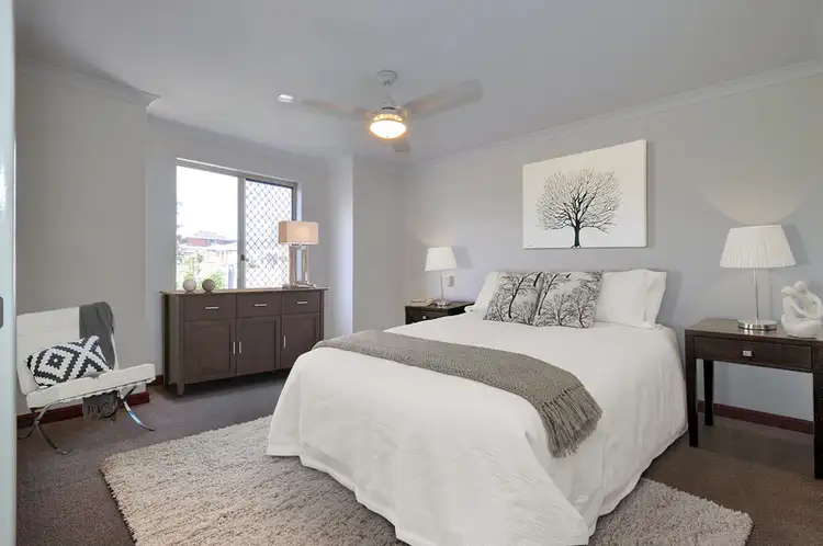 - To the left is the king size master bedroom with ceiling fan and WIR, and ensuite with shower, vanity and separate WC