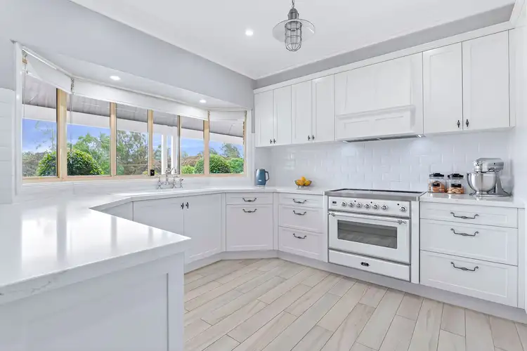 Discover the perfect blend of luxury living and practical rural lifestyle on five arable, prestige acres, where thoughtful design and exceptional infrastructure come together to create an unparalleled family haven. This fully renovated residence offers an inviting escape, showcasing modern finishes, reverse-cycle ducted air conditioning, stylish shutters on all windows, and generous living zones that flow effortlessly throughout the home. A charming wraparound verandah encircles the residence, providing the ideal place to relax, entertain, or simply take in the peaceful rural surrounds.