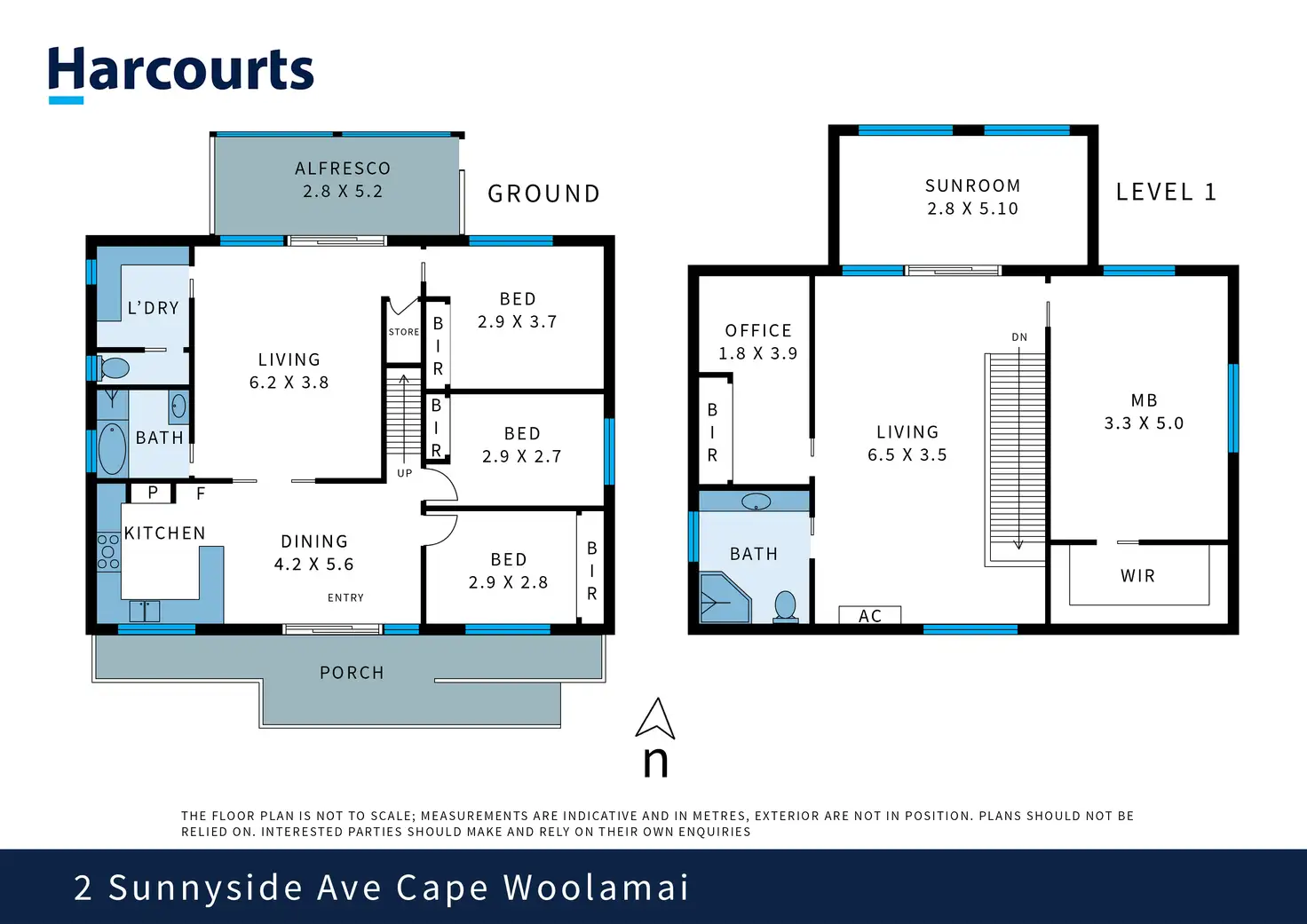 Upstairs, you'll find two additional bedrooms, including a master with a walk-in robe and another with a built-in robe. Both are fitted with ceiling fans for added comfort. A spacious living area with split system and ceiling fan flows into a sun-drenched enclosed sunroom – the perfect nook for morning coffee, creative pursuits, or quiet reflection. A central bathroom with shower, toilet, and vanity completes the upper level.