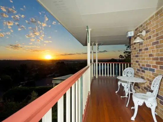 To the left of the entrance hall is a large formal lounge and dining area. On one side, a bay window looks south to the mountains of Lamington National Park,, a spectacular view. The West side has egress to the balcony and BBQ area, with more views West to the Great Dividing ranges.