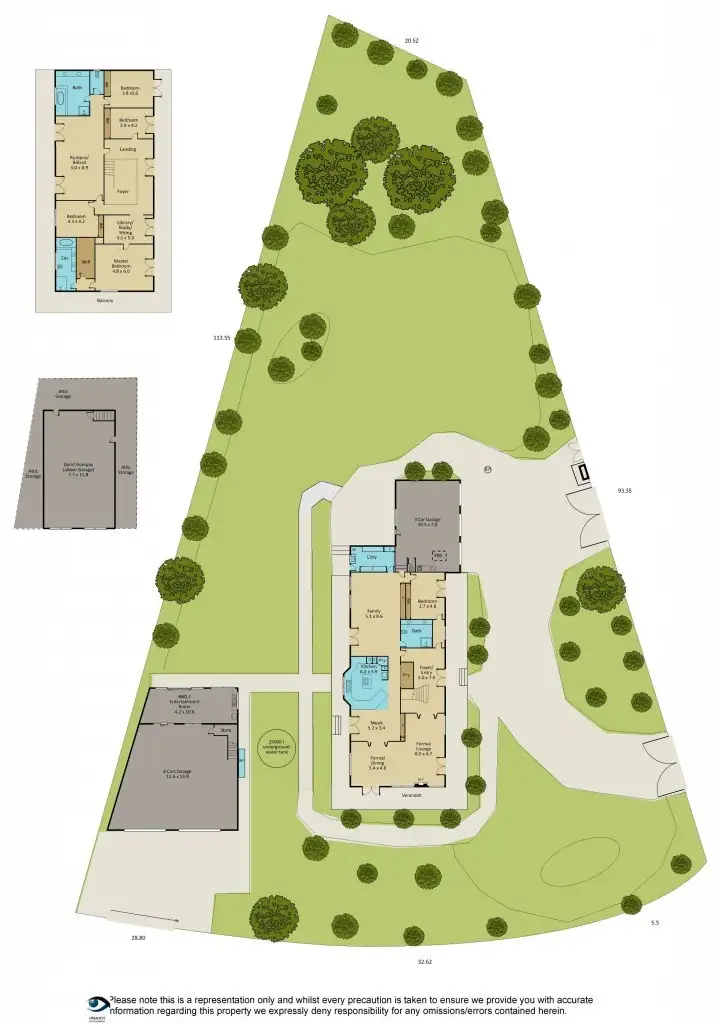 - Further outdoor features include a computerised watering system drawing from a 25,000 litre underground concrete tank, additional 3 car garage with internal/rear access + toilet, horseshoe drive with winding pathways meandering through manicured garden beds and lots of secure, open outdoor space for kids/pets to run around in.