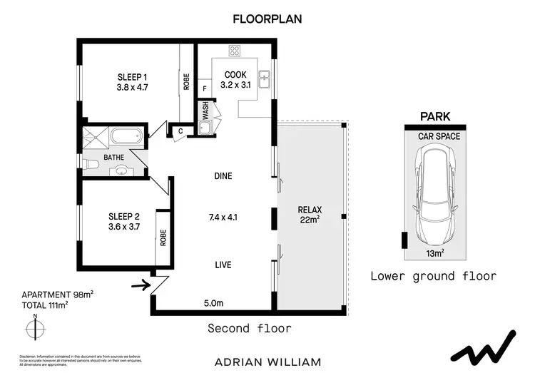 2 Bed • 1 Bath • 1 Car • 111m²