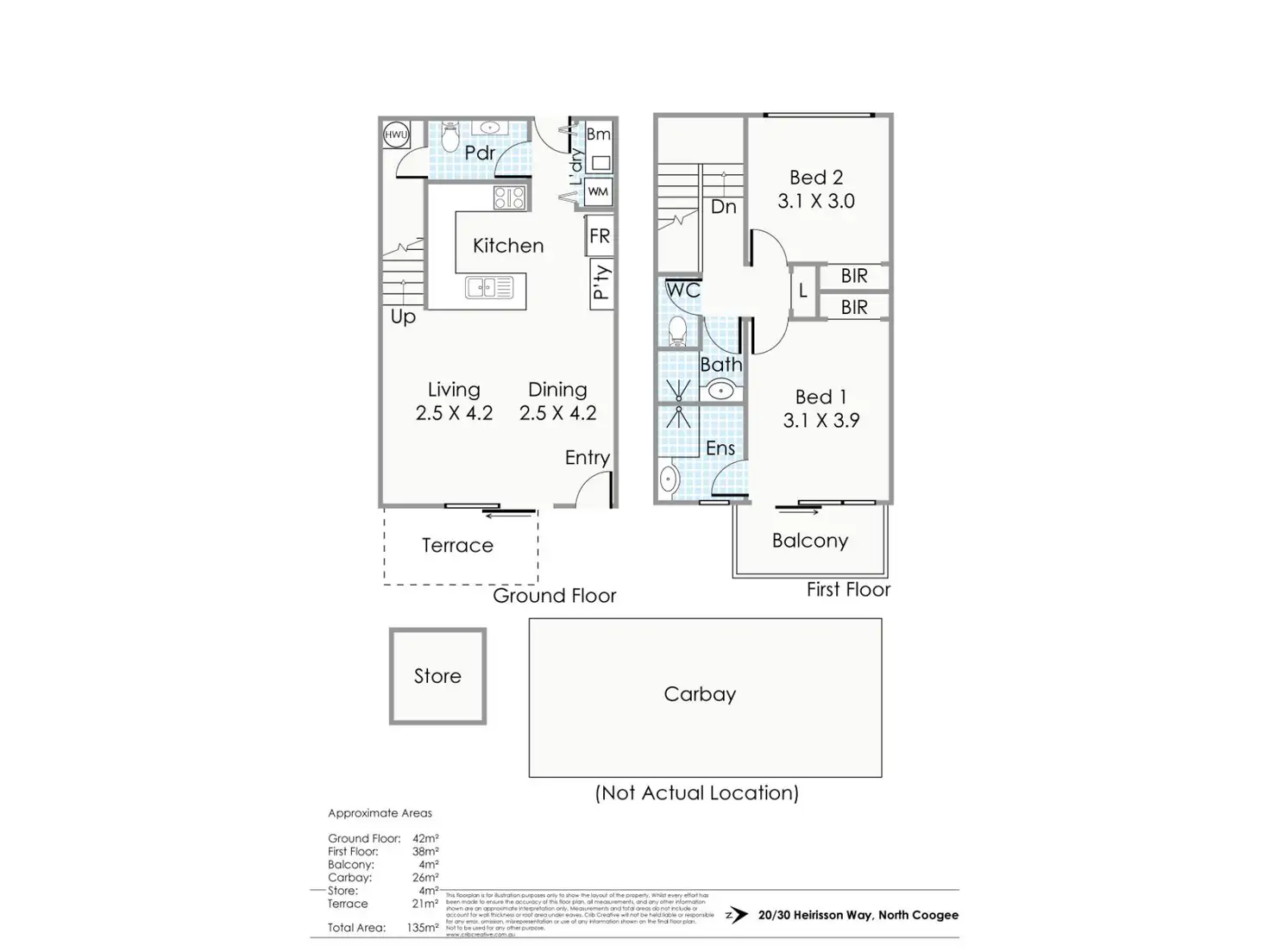 2 Bed • 2 Bath • 2 Car • 135m²