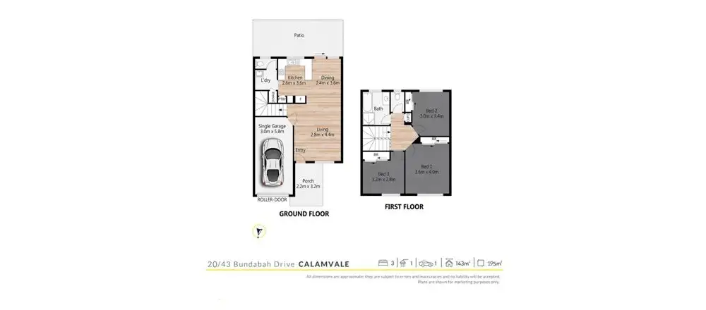 3 Bed • 1 Bath • 2 Car • 195m²