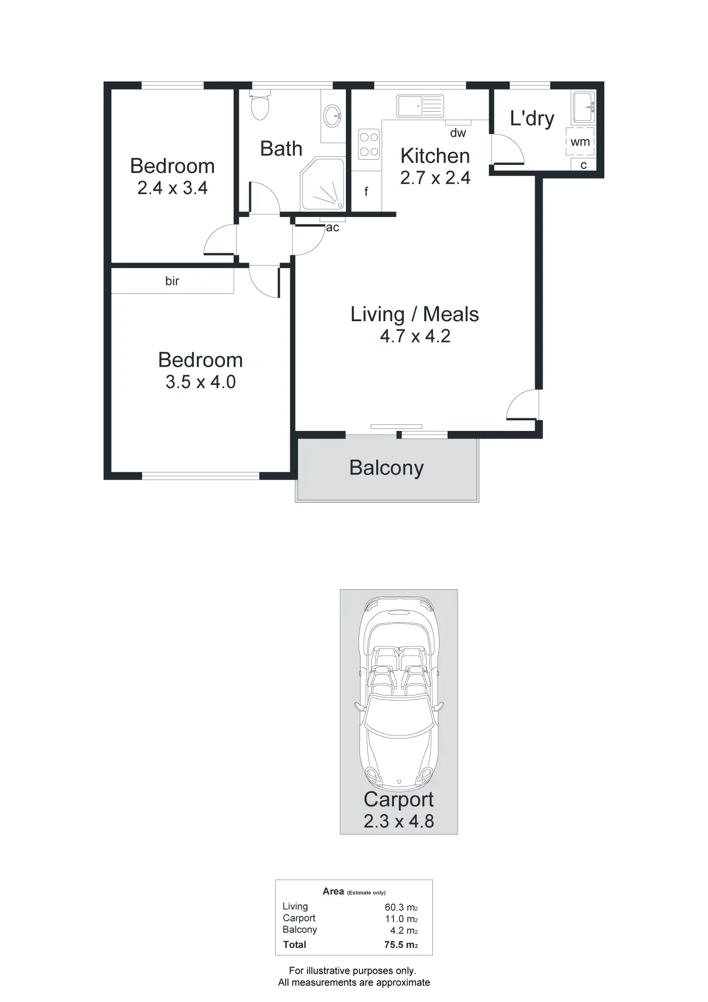 2 Bed • 1 Bath • 1 Car