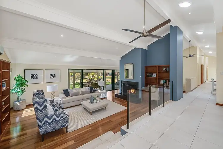 Everything about this home is vast including the entry foyer which opens onto the expansive formal lounge with its sophisticated open fireplace. The fire is equipped with a heat exchange system to keep the home toasty warm in winter. Reverse cycle air-conditioning and fans are also fitted throughout. The formal dining area is well placed, close to the kitchen, whilst the family room is open plan with the kitchen. Both the formal lounge and family room open directly onto the north facing, covered entertaining area where you can enjoy the alfresco kitchen, dining, and outdoor lounge area.