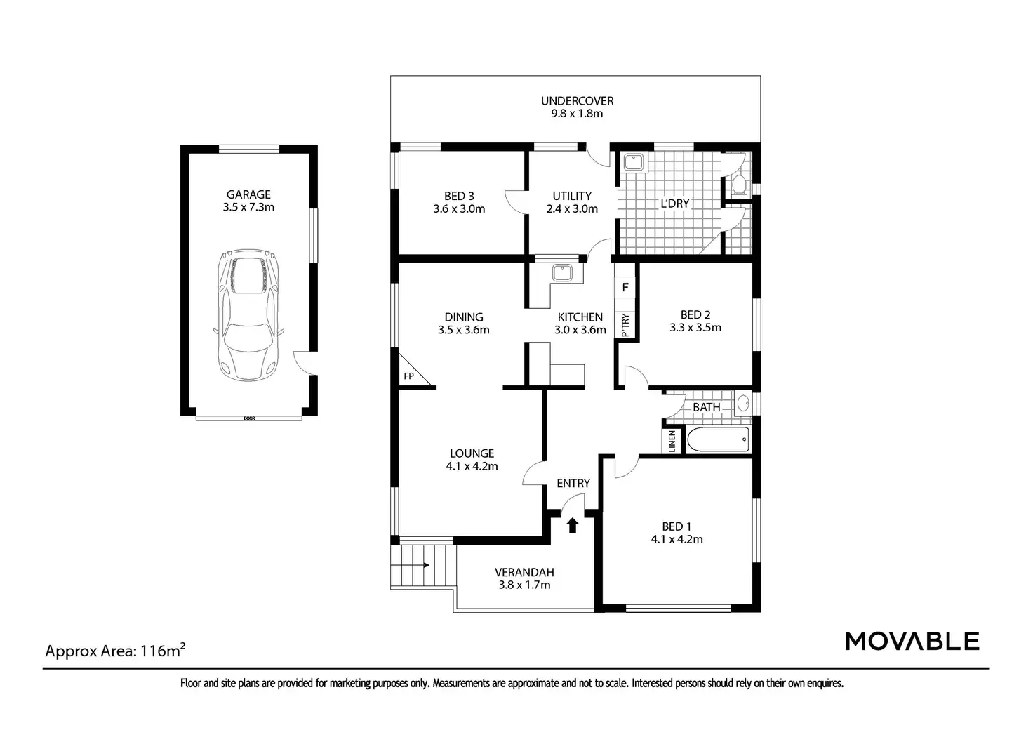 3 Bed • 1 Bath • 1 Car • 664m²