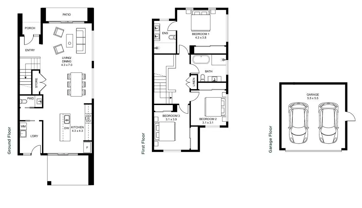 3 spacious bedrooms, including a master suite with walk-in wardrobe and private ensuite