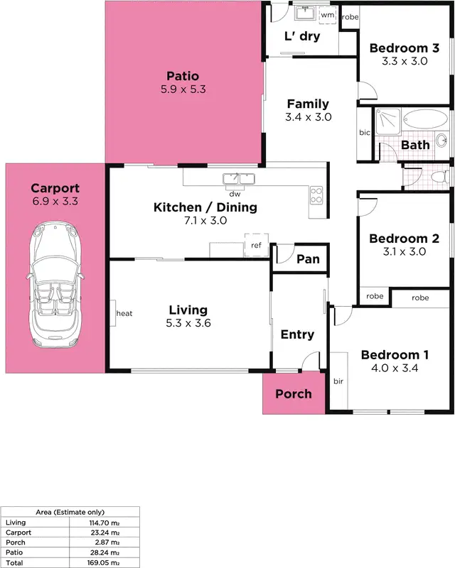 3 Bed • 1 Bath • 1 Car • 800m²