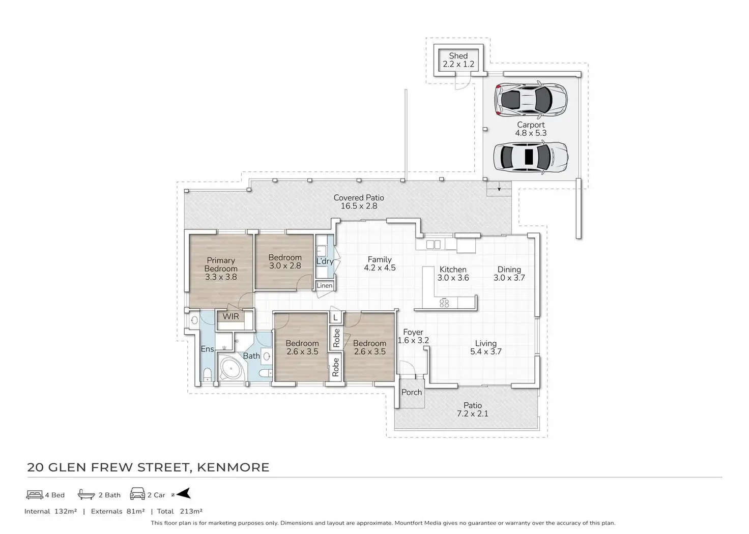 4 Bed • 2 Bath • 2 Car • 612m²