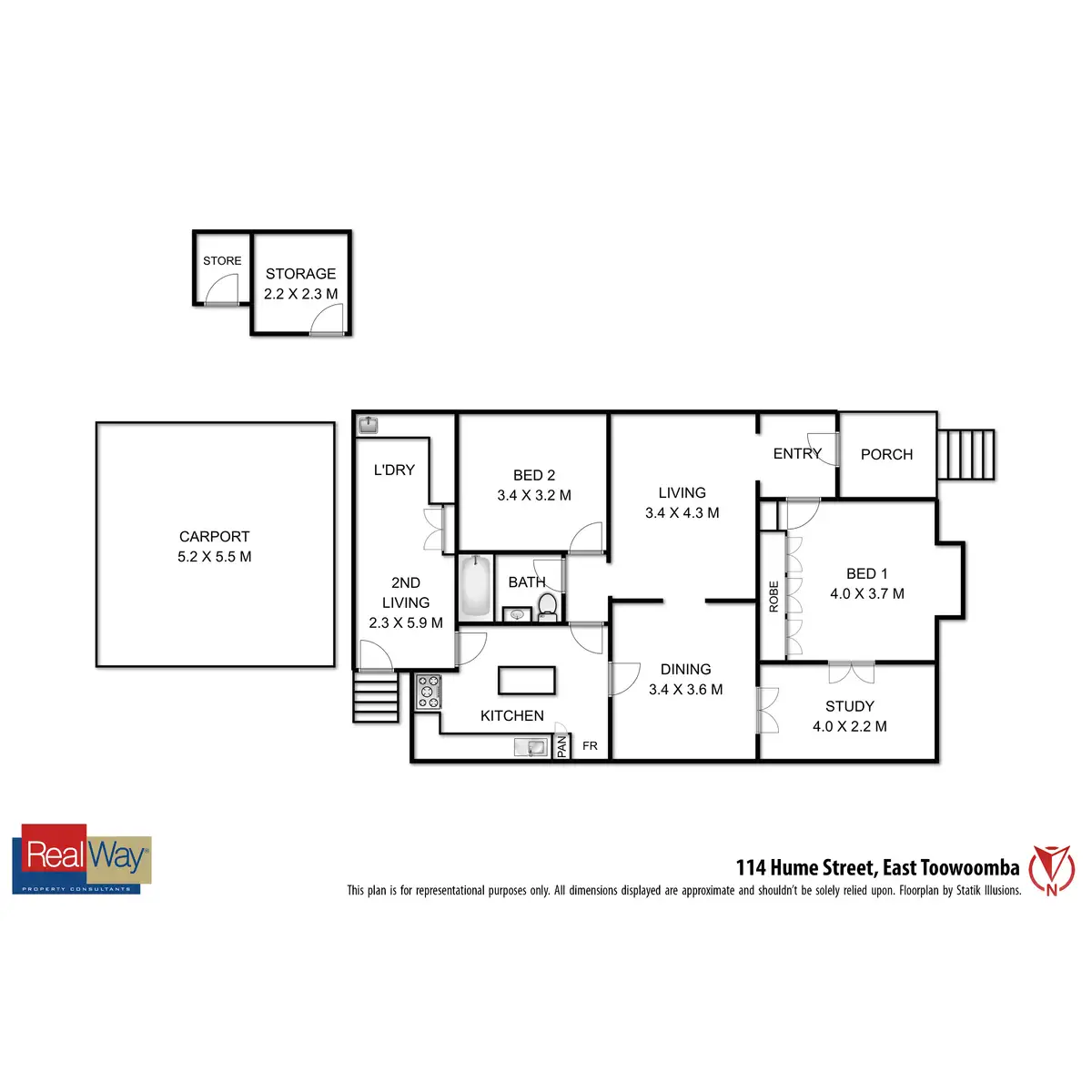 3 Bed • 1 Bath • 2 Car • 483m²