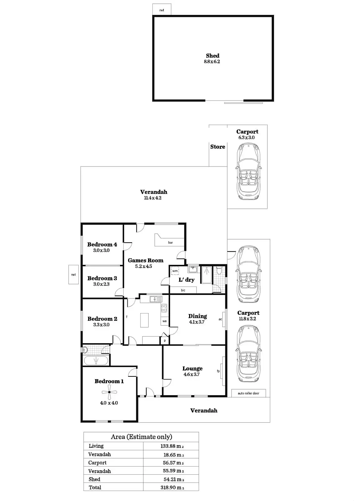4 Bed • 2 Bath • 3 Car • 1080m²