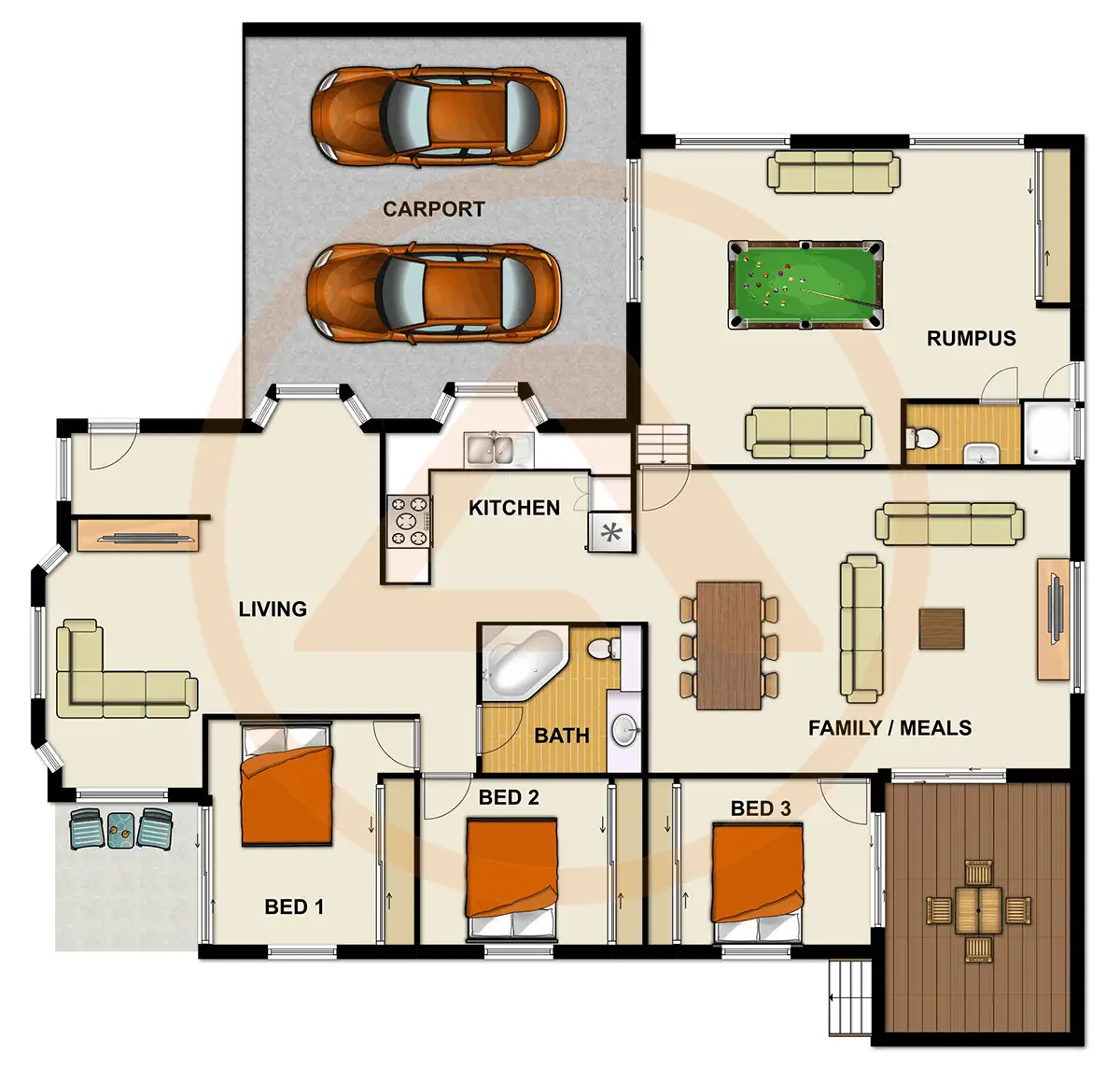 3 bed 2 bath 2 car on 607sqm
