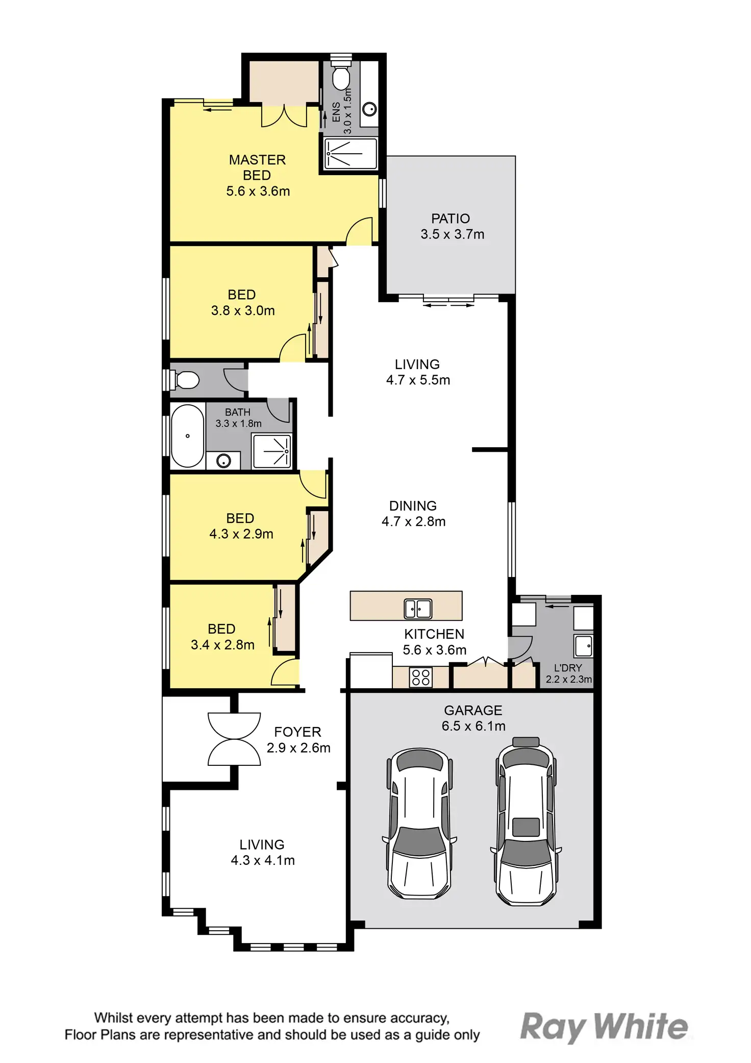 • Master bedroom with walk-in robe, spacious ensuite, ceiling fan, and air-conditioning