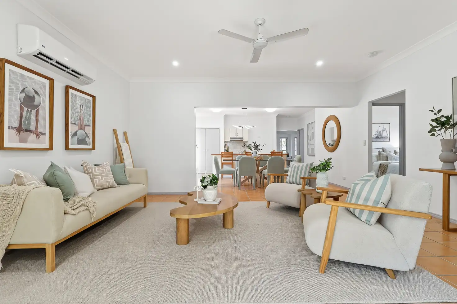 • Open-plan living and dining area with air-conditioning and ceiling fan