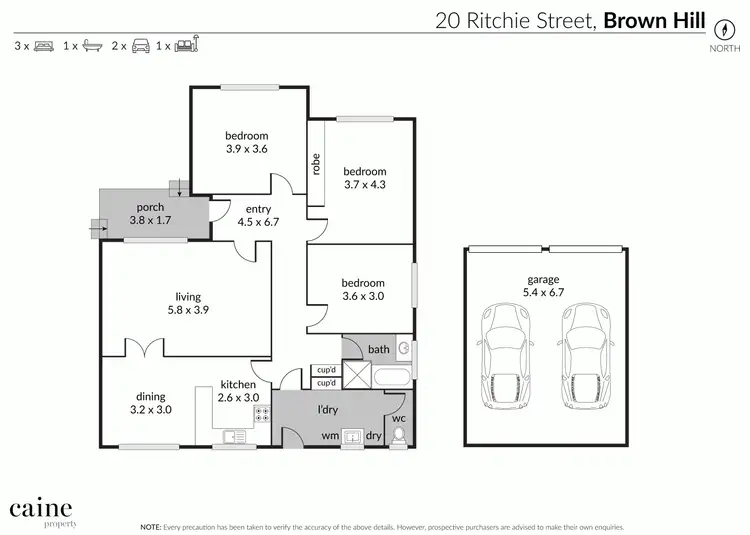 3 Bed • 1 Bath • 2 Car • 744m²