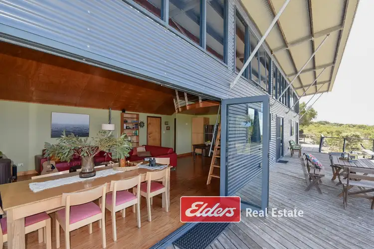 As you approach the property via the winding limestone drive through carefully managed bushland and grounds, a sense of tranquility envelops you. The rear entrance door opens into a simple open-planned kitchen, dining, and living area with bifold doors seamlessly connecting the interior to the expansive deck. High ceilings add to the sense of spaciousness, with a loft space providing an ideal spot for an office or studio, offering mesmerizing views of the ocean.