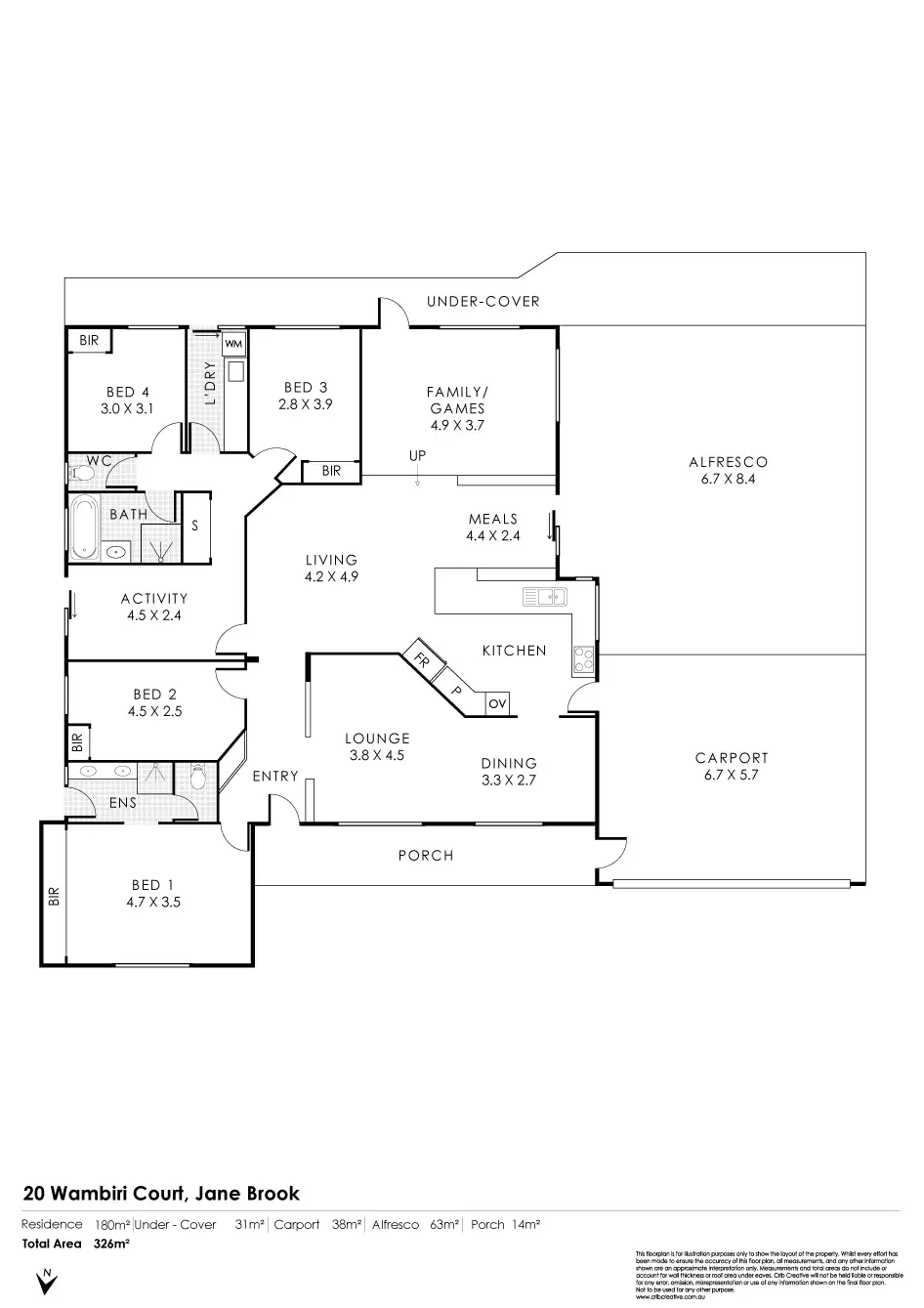 • Large side gabled alfresco entertaining area with outdoor heater included