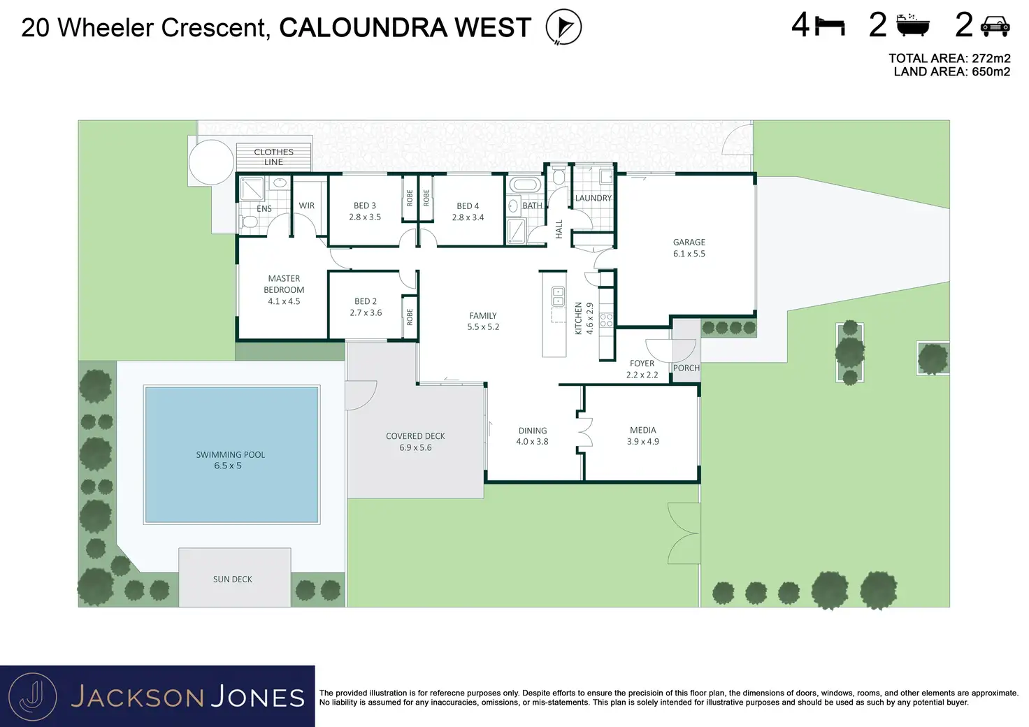 20 Wheeler Crescent, Caloundra West, is perfectly positioned in a family-friendly neighborhood. Set on a generous 650sqm block, this impressive property features a spacious 288sqm residence that seamlessly blends indoor comfort with outdoor living. Enjoy the expansive covered decked alfresco overlooking the stunning 6x4 meter swimming pool. With side access and ample lawn space for children to play and families to enjoy, this spectacular home has it all!