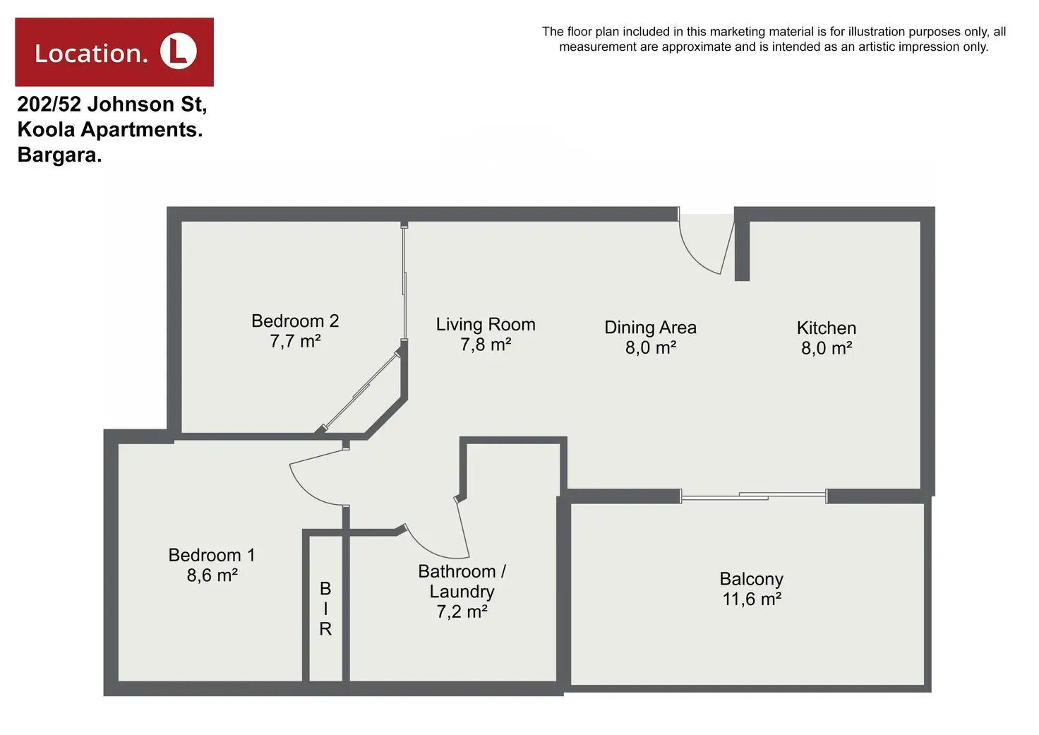 The floor plan included in this marketing material is for illustration purposes only, all measurement are approximate and is intended as an artistic impression only. Any fixtures shown may not necessarily be included in the sale contract and it is essential that any queries are directed to the agent. Any information that is intended to be relied upon should be independently verified.*