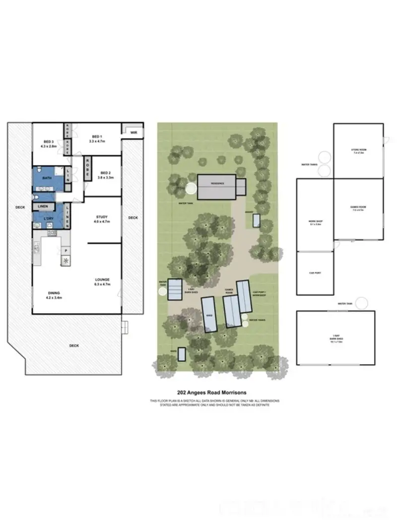 . Large games room, storage shed, barn shed, 4 bay machinery shed, animal shelter,steel holding yard and ramp, large aviary