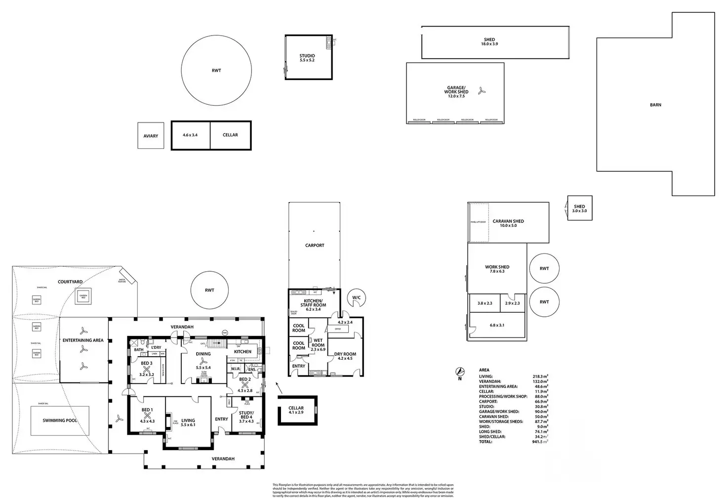 • Separate studio - ideal for art, office, or guest space with 3-phase power