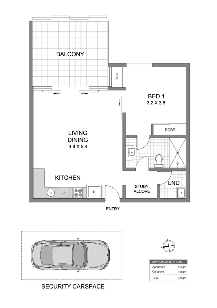 1 Bed • 1 Bath • 1 Car • 73m²