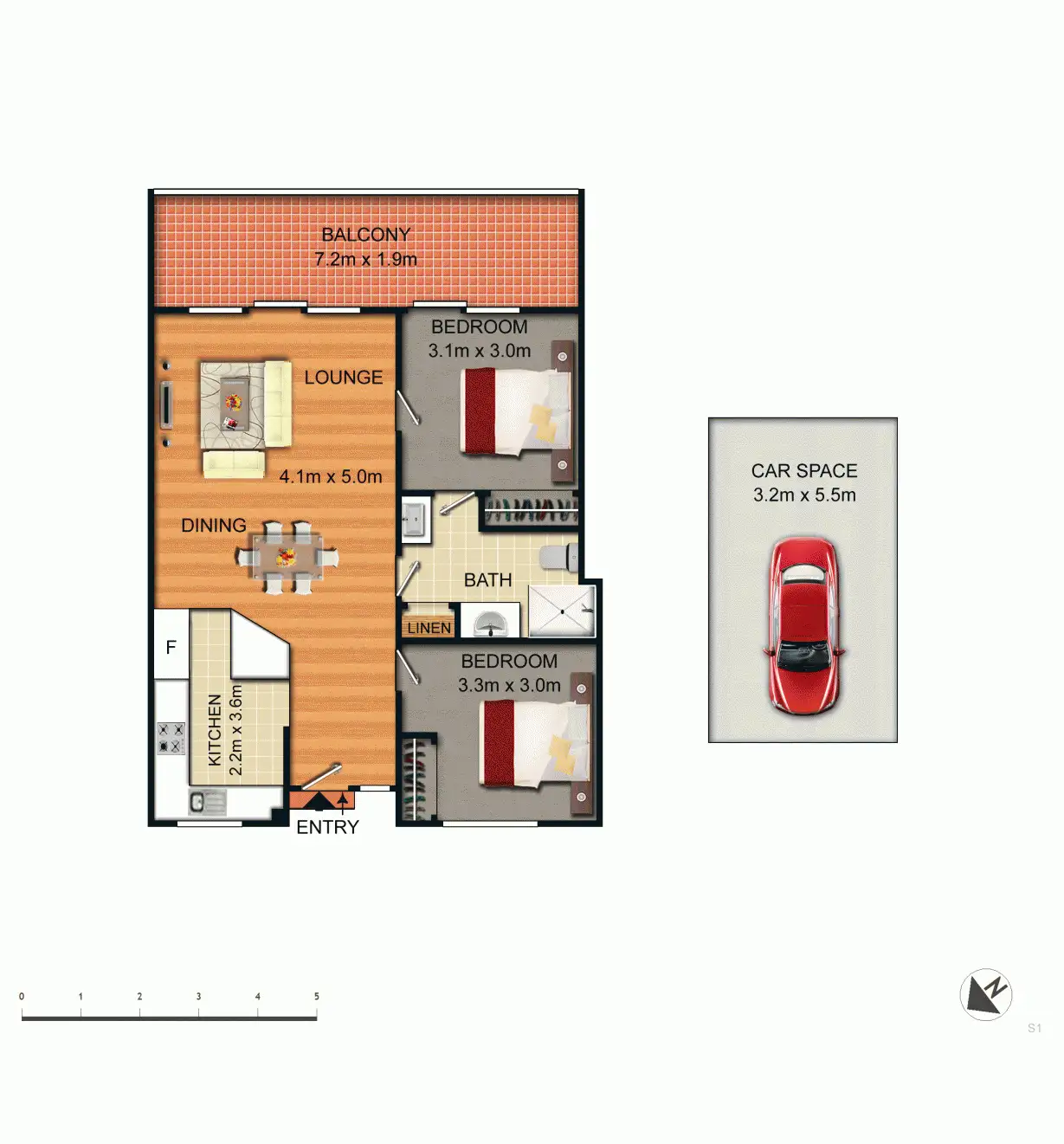 2 Bed • 1 Bath • 1 Car