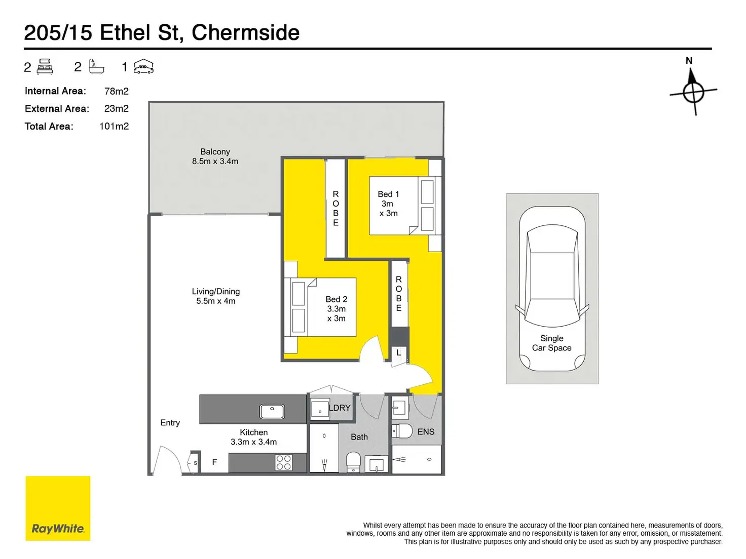Currently owner-occupied and beautifully maintained, this north-facing, light filled 2-bedroom, 2-bathroom apartment is ready for its next chapter. Move straight in or rent it out immediately.