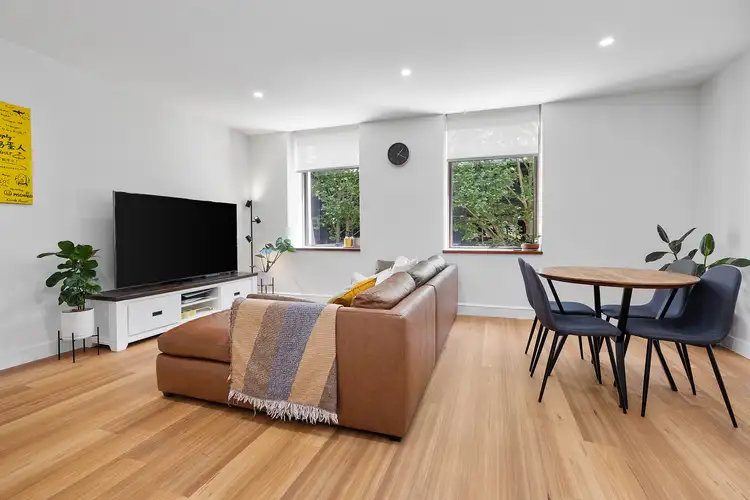 Part of a boutique EJE Architecture conversion of just 25 residences, it features high ceilings, oversized windows and leafy Perkins Street views that create a calm, private feel rare in the city. Inside, timber floors, ducted air-conditioning, a sleek gas kitchen and a two-way bathroom with Euro laundry deliver effortless living and low maintenance.