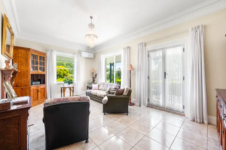 A large, paved alfresco welcomes you inside to the central kitchen and huge main living space, with slow combustion heating and reverse cycle air conditioning. The kitchen includes timber cabinetry and breakfast bar, with a 900mm 5-burner gas cooktop and double door Falcon oven, dishwasher and great pantry storage. A tiled formal dining space leads through to 2nd formal living area, also with slow combustion heating and reverse cycle air conditioning, and direct access to the side verandah.