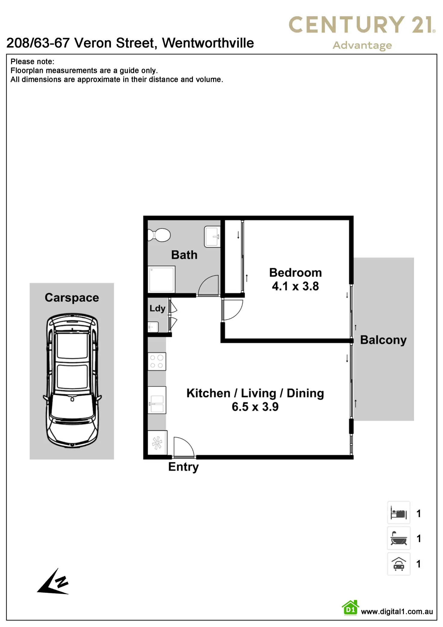 1 Bed • 1 Bath • 1 Car • 76m²