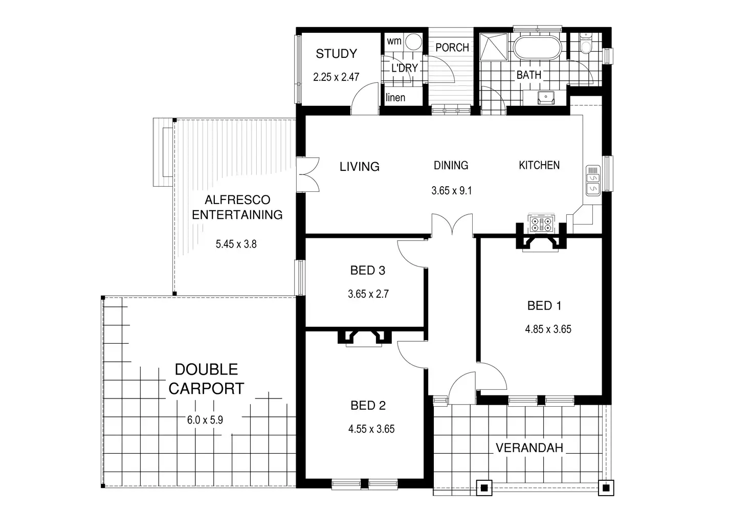 3 Bed • 1 Bath • 2 Car