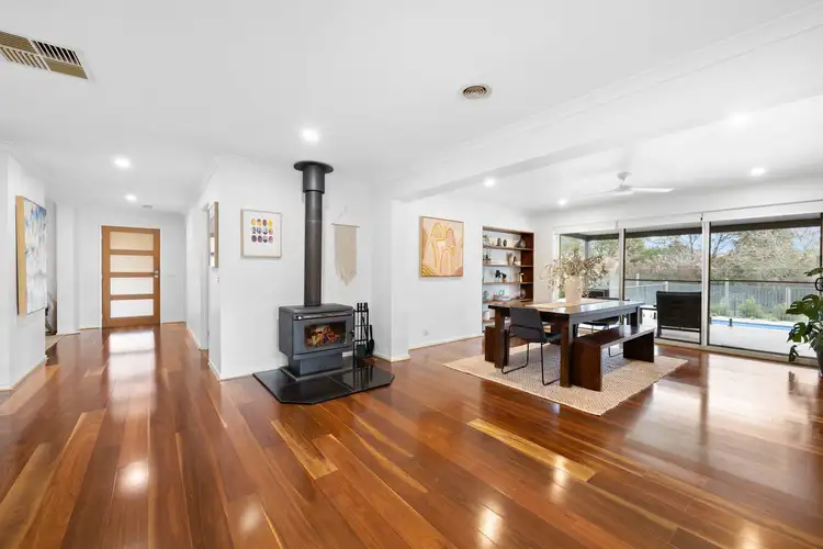 From the moment of entry, the home impresses with its impeccable sense of scale and warmth, underscored by Spotted Gum flooring and an intelligent layout crafted for both relaxation and refined entertaining. Light-filled living zones include a lounge, rumpus overlooking the rear yard, and an ambient dining space warmed by a wood-fuelled heater.