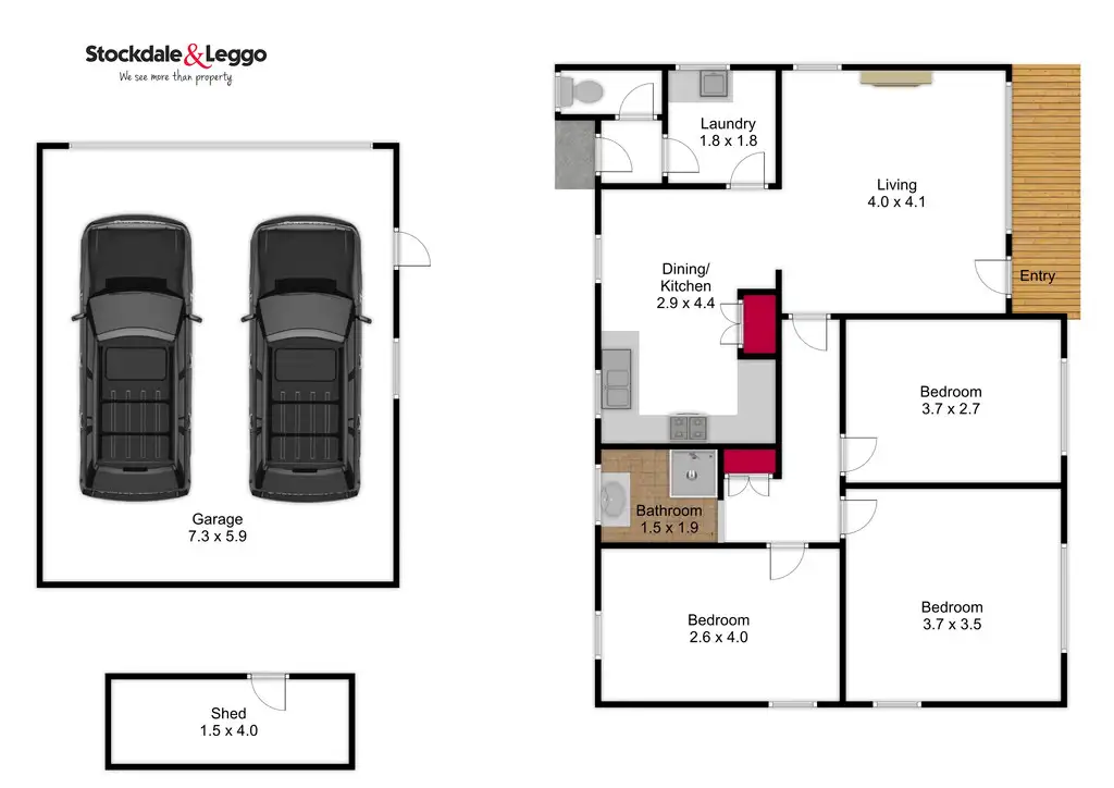 3 Bed • 1 Bath • 2 Car