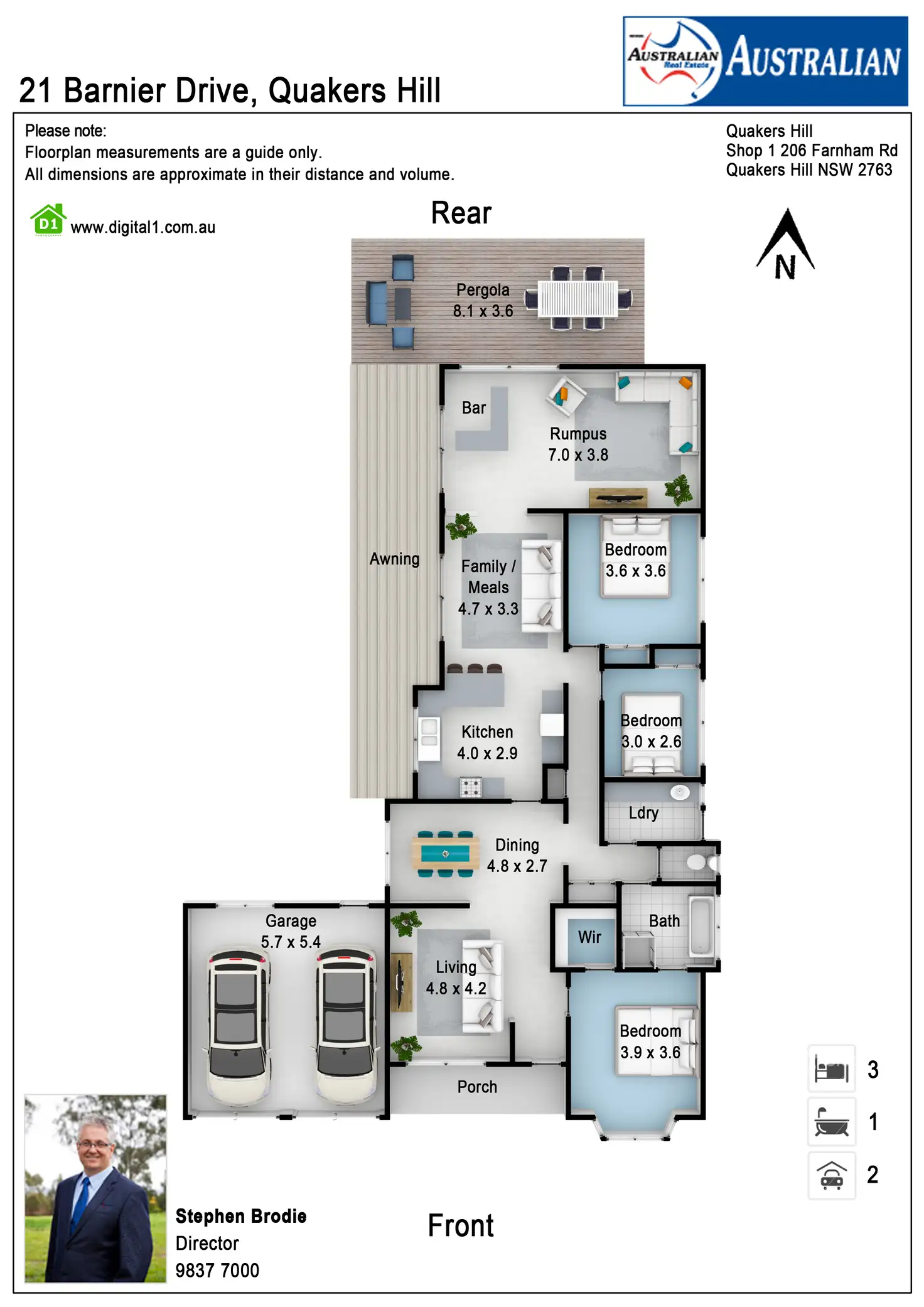 3 Bed • 1 Bath • 2 Car • 609.3m²