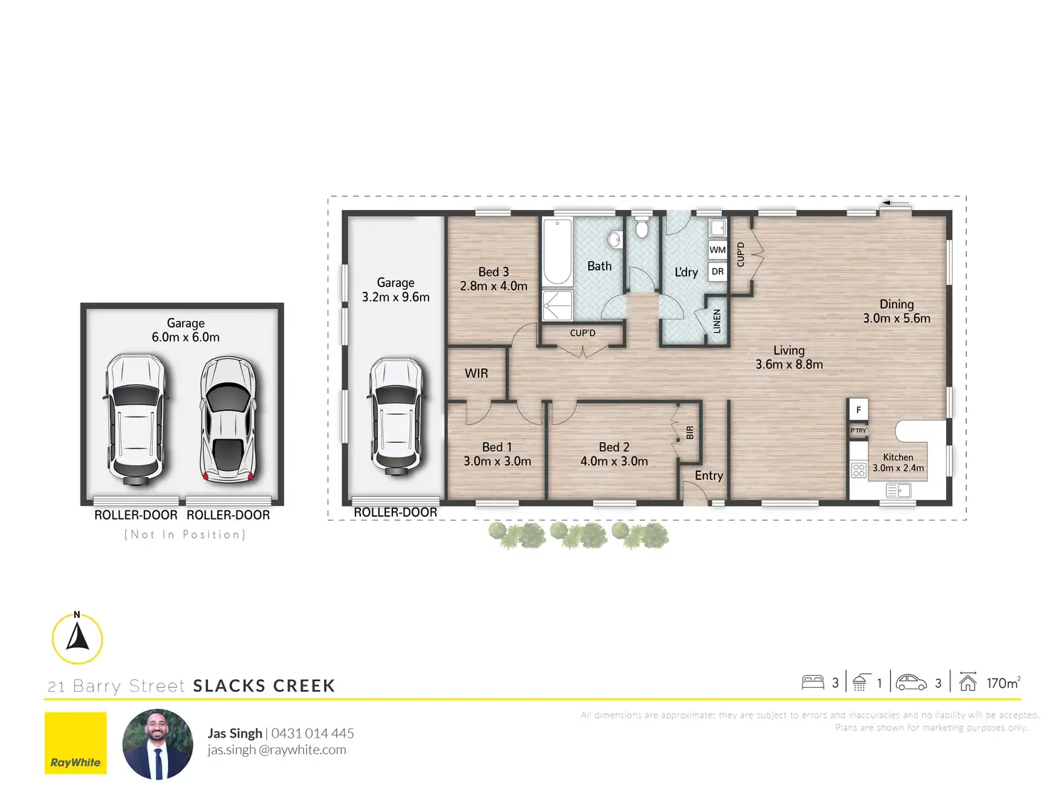 • Secure parking for 3 vehicles + side access to backyard